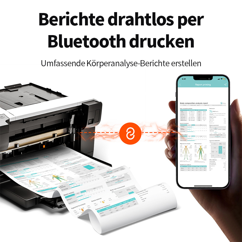 Verbinden Sie die Waage einfach per Bluetooth, um in der App umfassende Körperanalyse-Berichte zu erstellen.