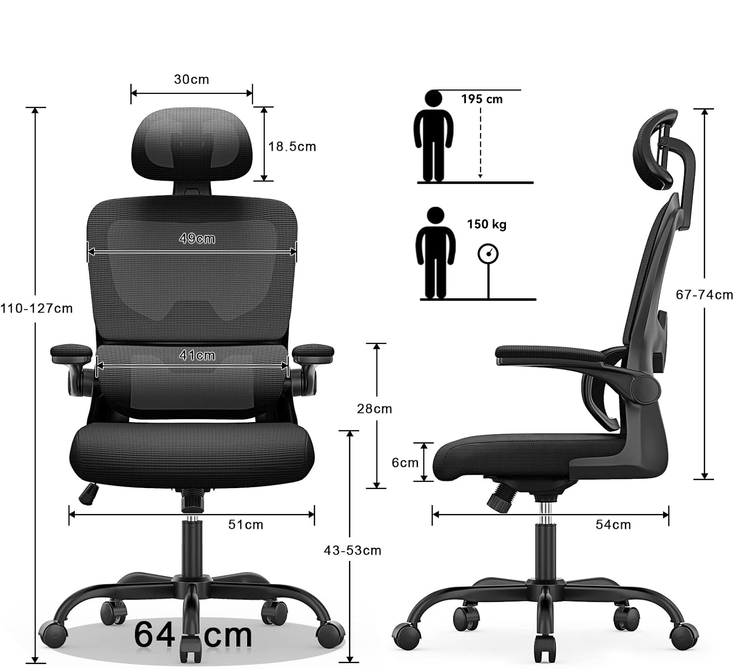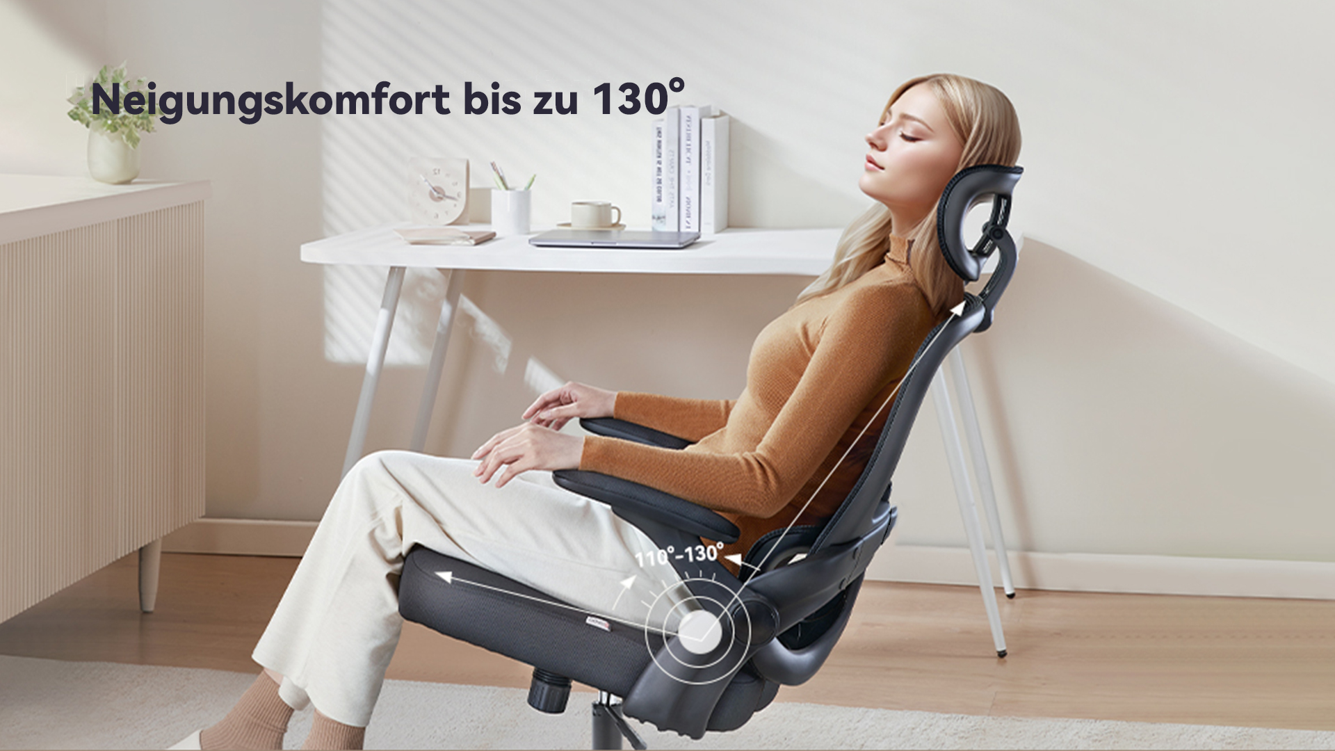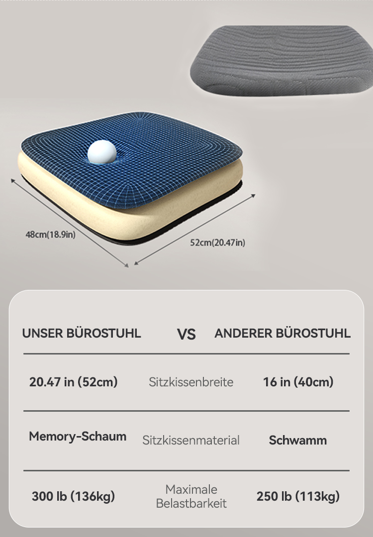 Unser Team hat sich verpflichtet, den komfortabelsten Bürostuhl zu entwickeln. Dieser ergonomische Bürostuhl bietet 4 Stützpunkte – Nacken, Schultern, Rücken und Taille. Die Höhe von Sitzfläche, Kopfstütze und Armlehnen lässt sich leicht an verschiedene Bedürfnisse anpassen. Er ist mit Rückenstütze und Kopfstütze der perfekte Begleiter für Arbeit und Freizeit.