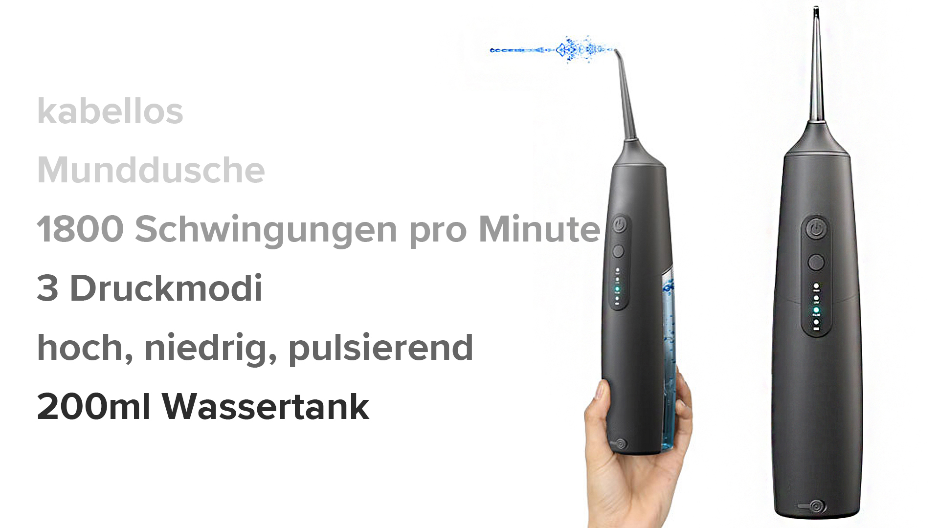 Diese kabellose Munddusche kombiniert gezielten Wasserdruck mit drei Reinigungsmodi (Sanft, Standard, Puls) für eine professionelle Mundpflege zuhause.