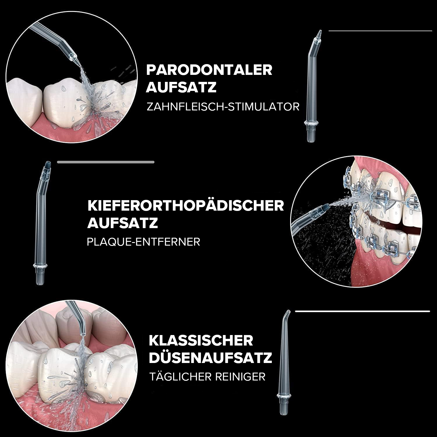 Massiert sanft das Zahnfleisch, beugt Blutungen vor und entfernt selbst hartnäckige Speisereste – effektiver als herkömmliche Zahnseide.