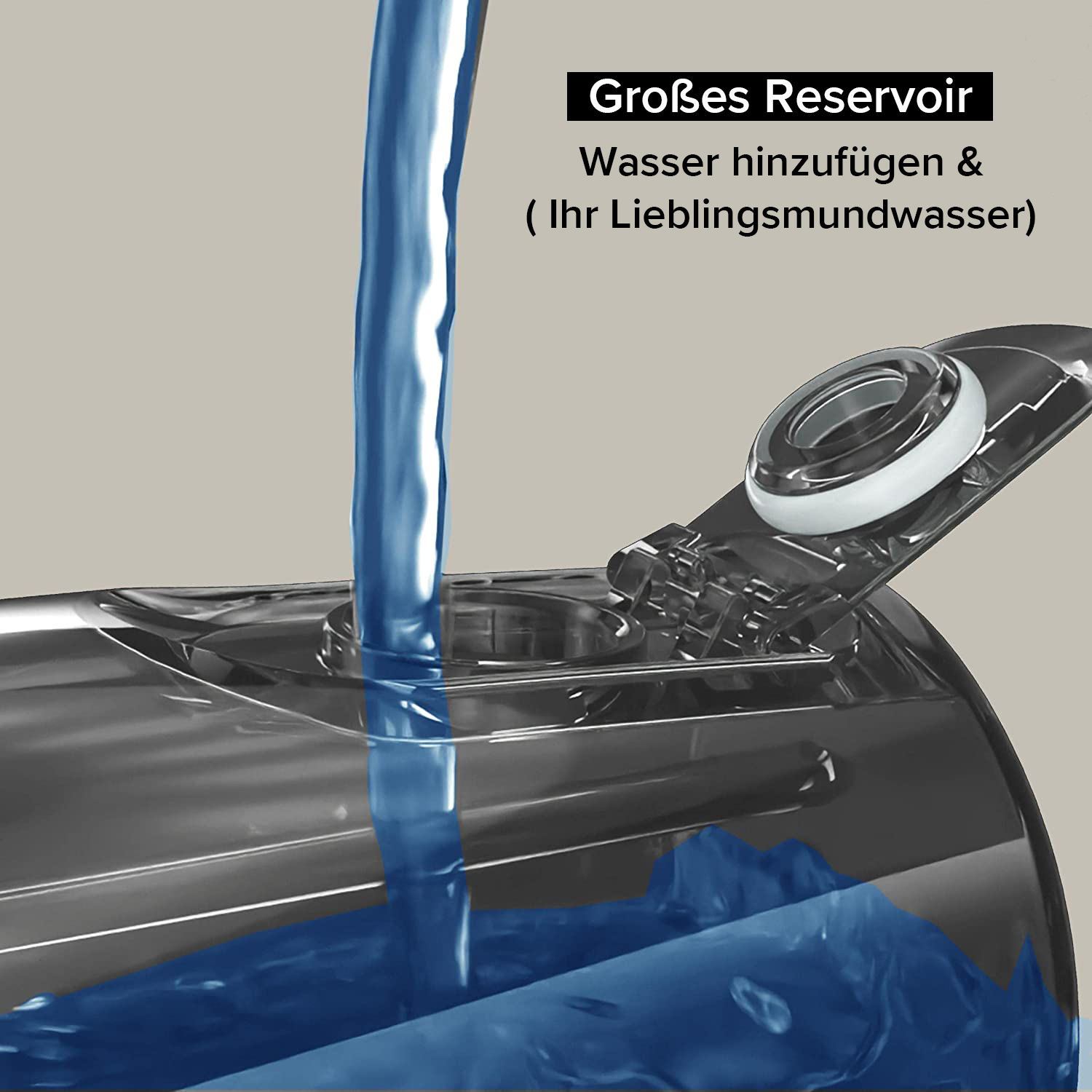 Der integrierte 200 ml Wassertank ermöglicht eine komplette Mundpflege-Routine ohne Unterbrechung. Sauberkeit ohne Kompromisse.
